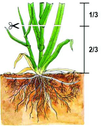 Ayrıca bilinmesi gereken önemli bir konu da bitkinin hiçbir zaman tek bir seferde 1/3 ünden fazlasının kesilmemesi gerektiğidir. Eğer çimlerin çok uzamasına müsaade edip, biçim esnasında 1/3 ünden fazlasının kesilmesine sebep olursanız, bitki, köklerinde sakladığı besinleri tüketerek eksilen yapraklarını tamamlamak isteyecektir. Bu da zamanla köklerin azalmasına ve hatta yok olmasına ve buna bağlı olarak çimlerin seyrelmesine sebep olacaktır. Bu yüzden hiçbir zaman çimler çok kısa biçilmemelidir.